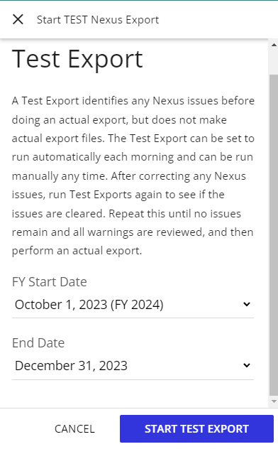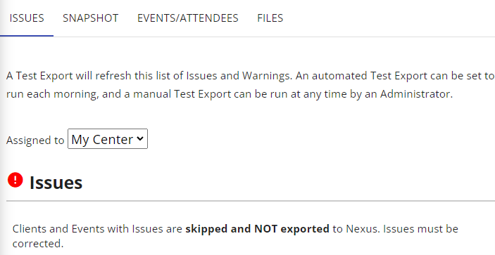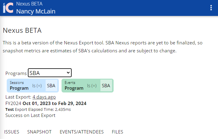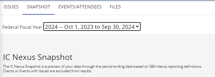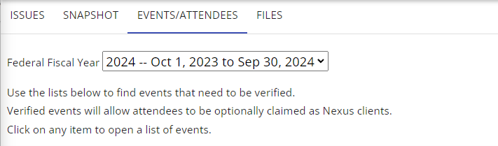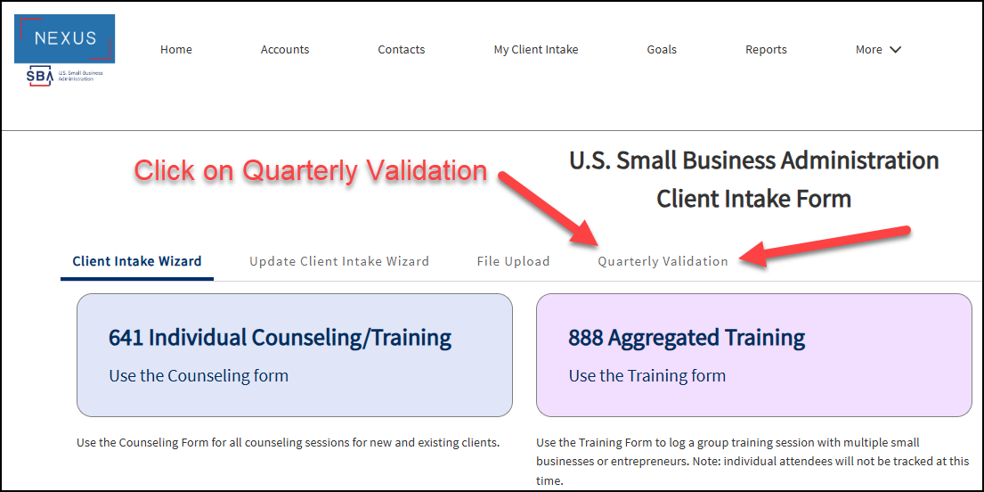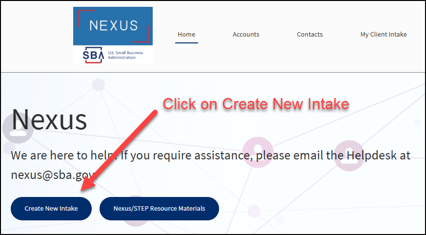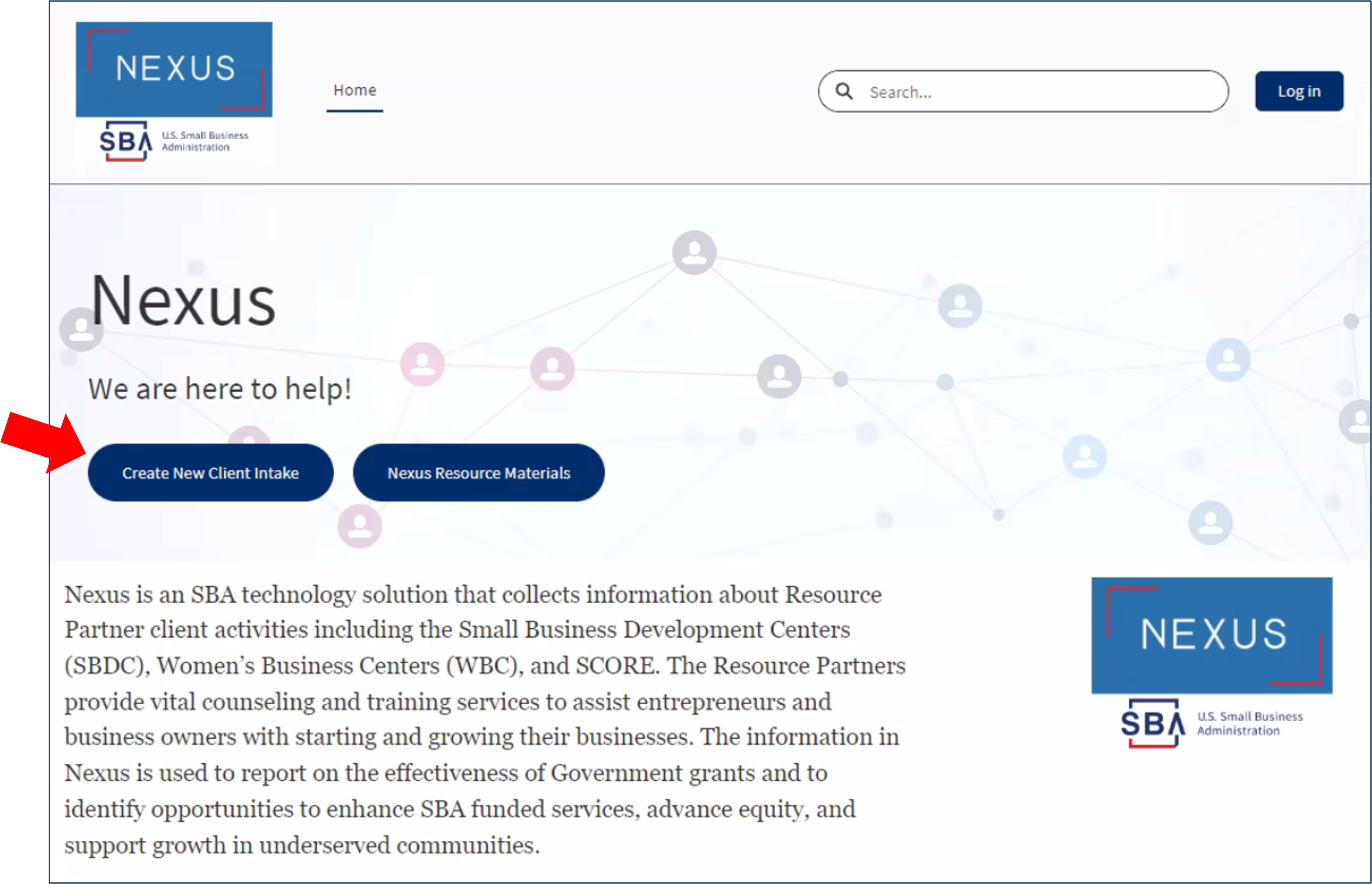 a screen capture of the Nexus welcome page with We are here to help text and two buttons to access entry of client data and system reference information